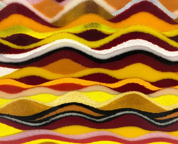 Create your own multi-colored linear abstract with frit (crushed glass); like sand art, but with glass.