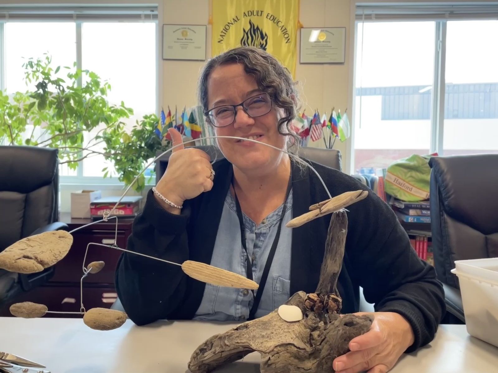 Making mobiles and stabiles with upcycled materials including, but not limited to driftwood, seashells, feathers, and recycled wire.